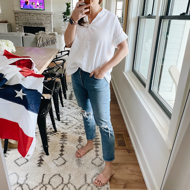 (above) Maybe you are noticing a trend... jeans, cute top & sandals are my summer go to. It's definitely what I feel most comfortable in. This swingy top is super affordable and cute!